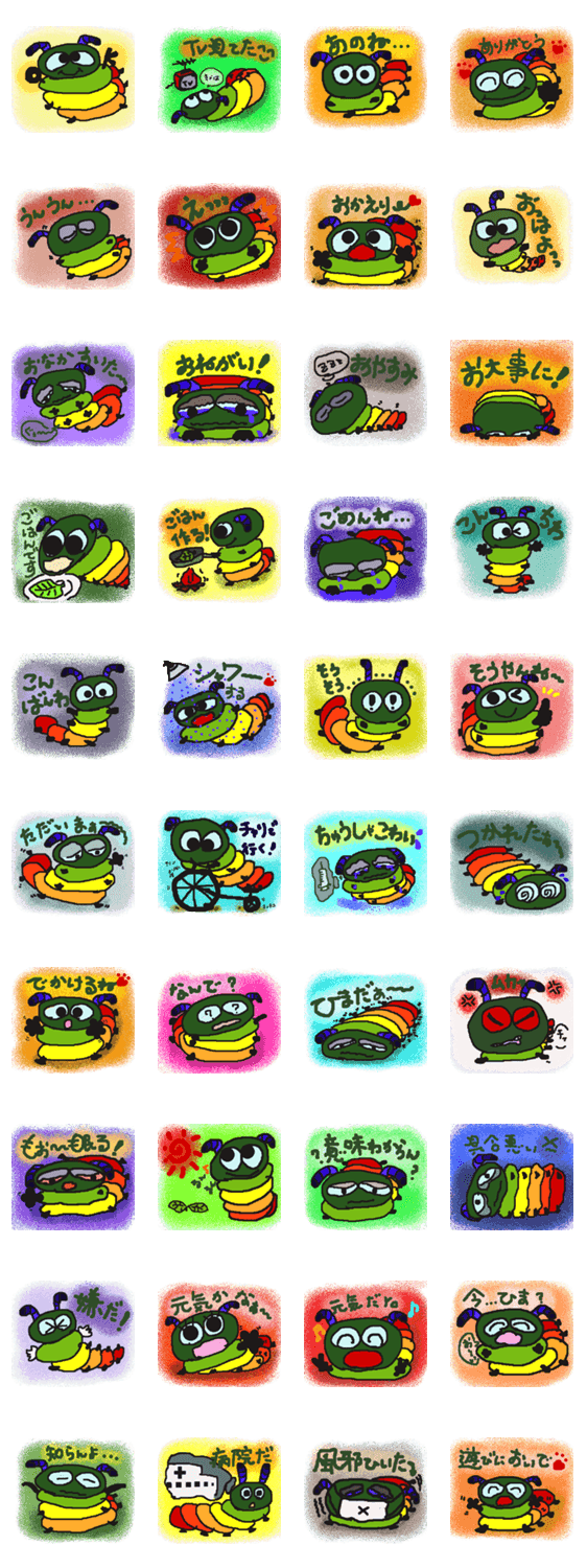 日常会話を取り入れてスタンプにしてみました。今回は芋虫のキャラクターです。。。可愛いので見てみて下さい。