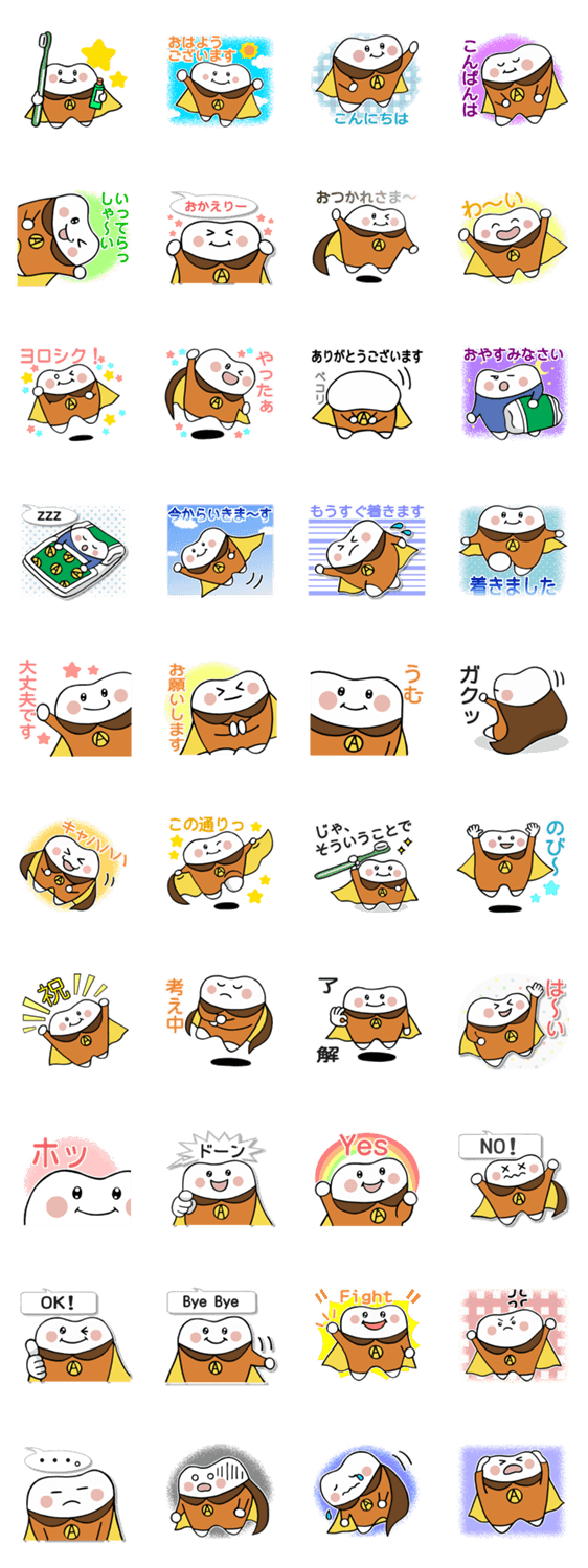 | スタンプ説明 | あゆみ歯科クリニックのイメージキャラクター「あゆみハーマン」が挨拶や相槌、感情表現を行ってくれます。会話が楽しく、笑顔になります^^ |