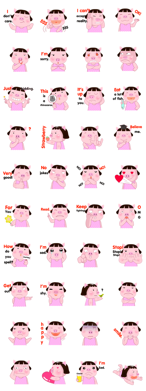PookPik Pig Girl (english) -LINEスタンプマニア