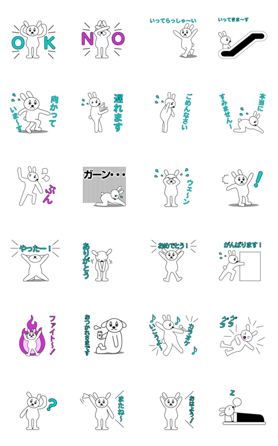 ウサギのような犬のような謎の生き物の動く日常用スタンプ。シンプルで送りやすい!