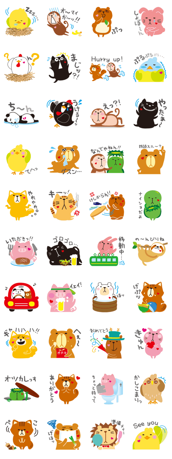 | スタンプ説明 | まるまるした顔、ぽよっとしたおなか、無愛想ながらなぜかにくめないココロにハートをもった「ぽよアニマル」*文具雑貨で人気のぽよアニマルがLINEスタンプに登場! |