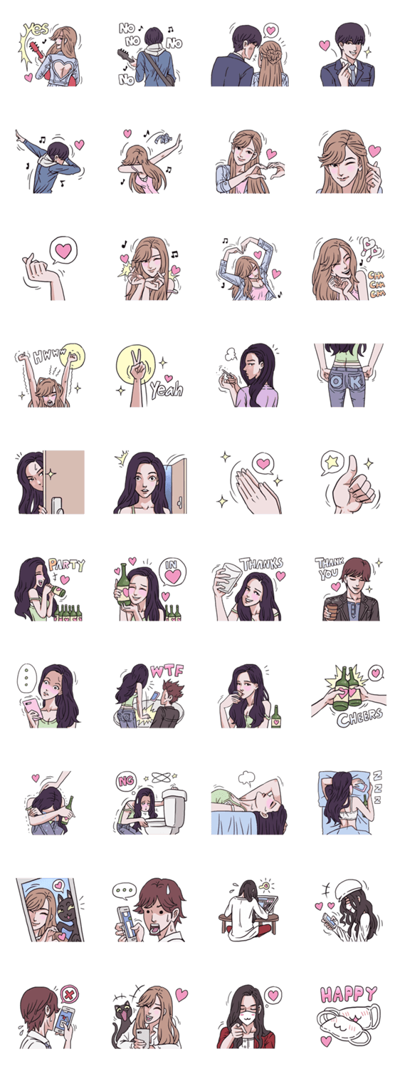| スタンプ説明 | this two comic Girl friends have a different life style! Denim love to have fun with music and Soju (her name) Just love to drink! See you next set! AsB |