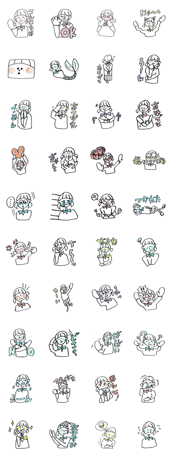 中学生のときに書いた、ふたつ結びの女の子「りんごちゃん」がLINEスタンプになりました(^-^)