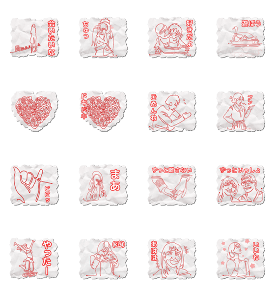 「一筆書き」で、線が切れないので、縁も切れない!? 縁起のいいスタンプです♪ 恋人同士で使いやすいセリフを選りすぐりました。