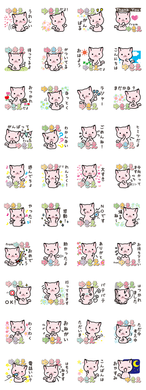 やさしいハム色のねこを、ほんわか名前スタンプにしました「ハムねこ」です。今回はすべてのゆきえさん用に作った「名前スタンプゆきえさん用」です。プレゼントにも是非。