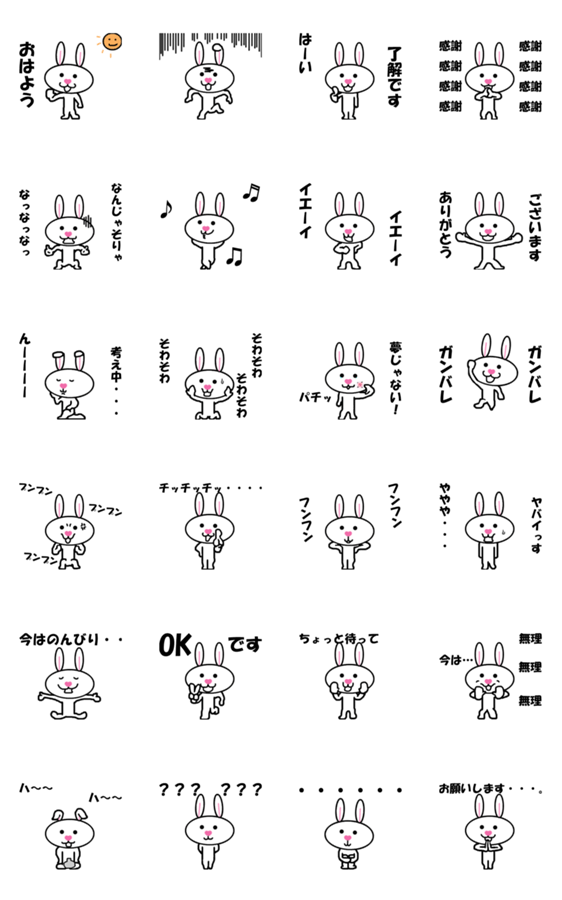 「ハート」形の鼻をした、うさぎの動くスタンプです。 よく使う言葉を集めているので沢山使ってください。