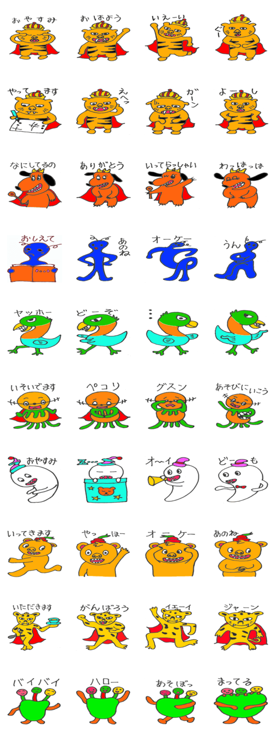 | スタンプ説明 | 12才の男の子がキャラクターを作りました。ねこの王様を”ねこキング”と名付け、仲間たちを作って愉快な世界を作っています。みんなに笑顔になってほしいです。 |