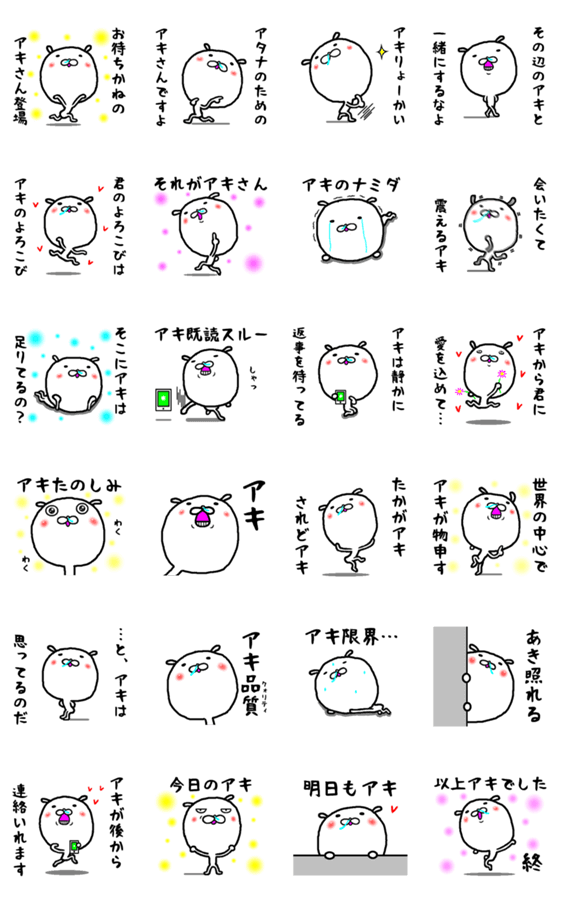 あきさん・あきこさん・あきなさん・あきえさん・あきのさん・あきとさんが使えるゆるゆるなアキ専用スタンプ