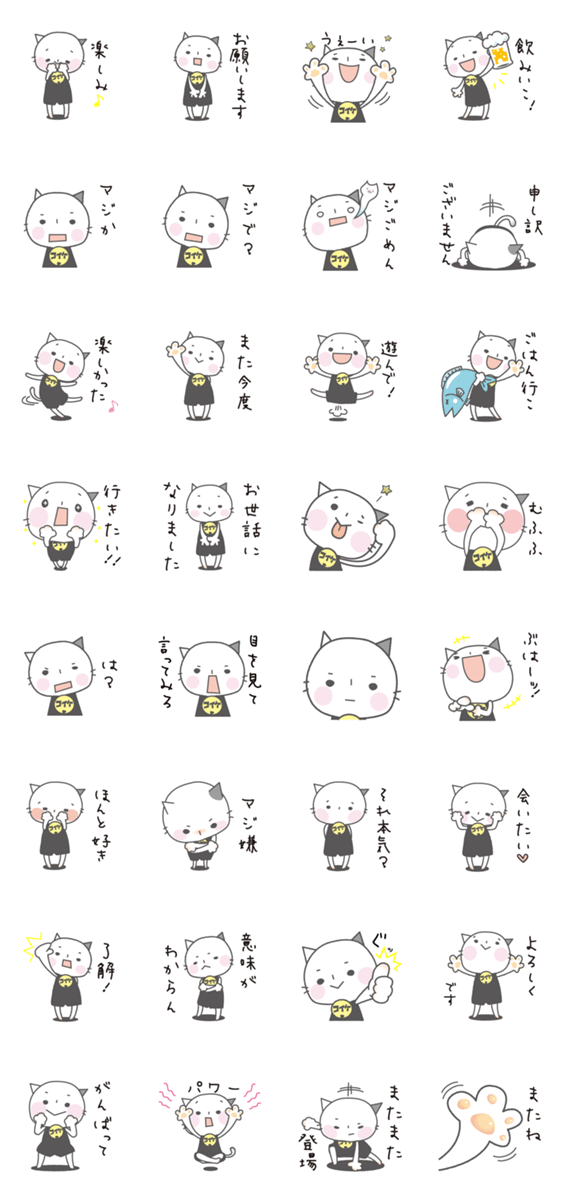 白ネコのあいうえお・・・ってるスタンプ