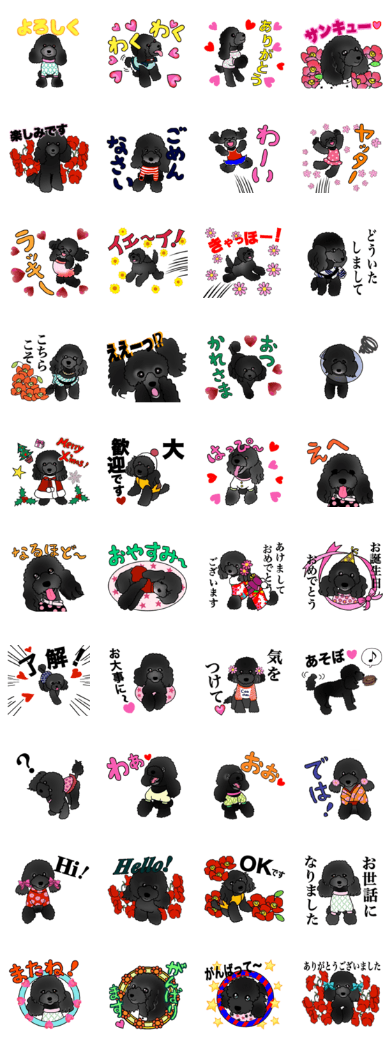 ブラックトイプーのくぅちゃんのスタンプ第2弾です! ますます可愛くなって再登場! ぜひぜひお友だちや家族へのメッセージに使ってネ!