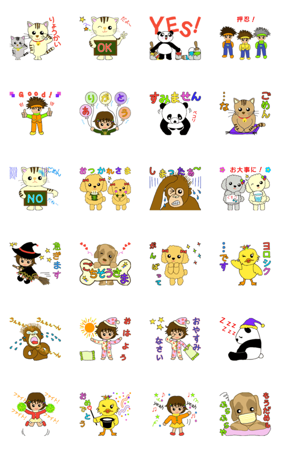 日常でよく使う楽しく動くアニメーションスタンプです ネコやイヌにパンダ達の色々な表情があります