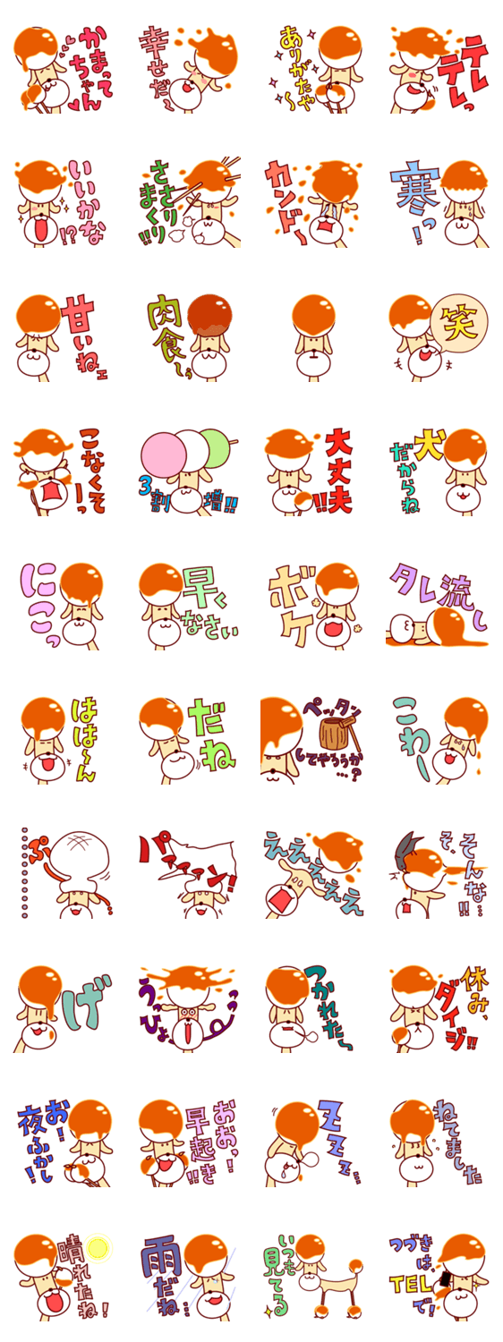団子をつけた、みたらし犬スタンプ第3弾。今回もモチがはじけてます。