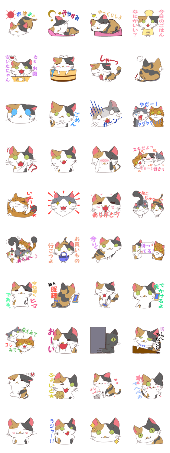 三毛猫かんなや そのお友達の賑やかスタンプです。 ちょっとしたトークにどうぞ!