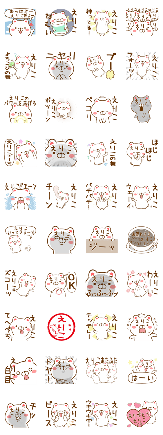 えりこさんが使うスタンプ。恵理子,絵里子,江里子,絵理子,悦吏子,江梨子,映莉子,枝里子,英里子,会里子,依利子,依理子,依里子,恵梨子などえりこがつく人専用のスタンプ