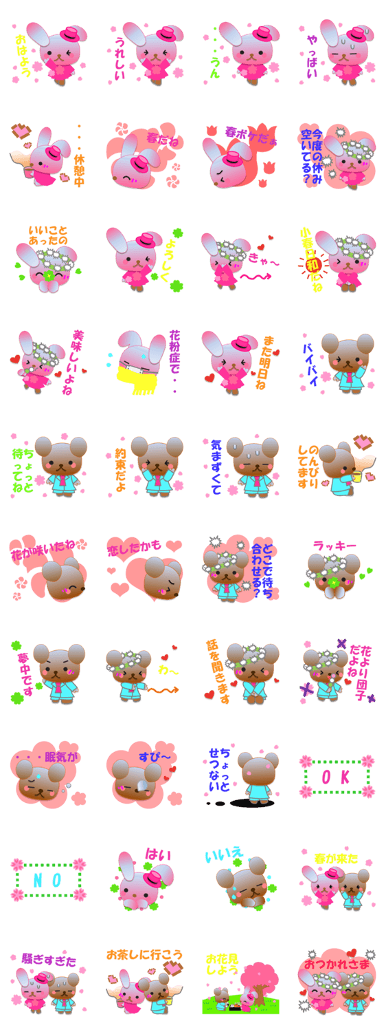 うさぎとくまのスタンプです。春バージョンです。