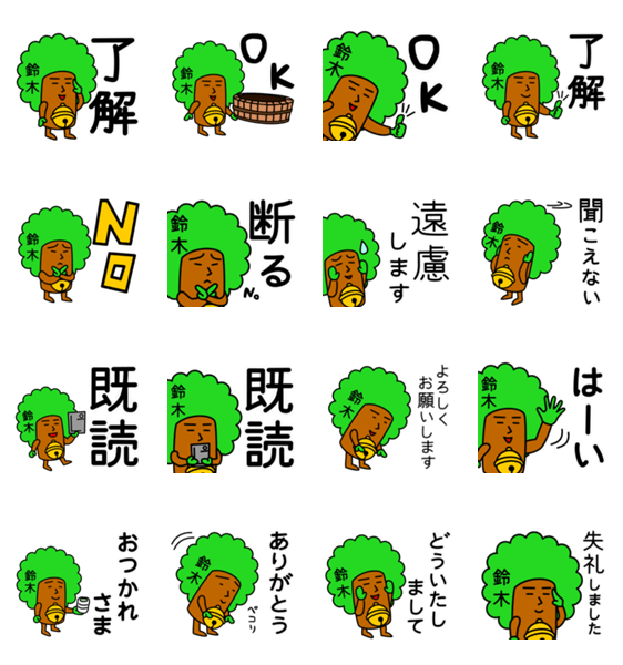 すずきさんのためのスズキスタンプです。 鈴木らしく、鈴と木です。
