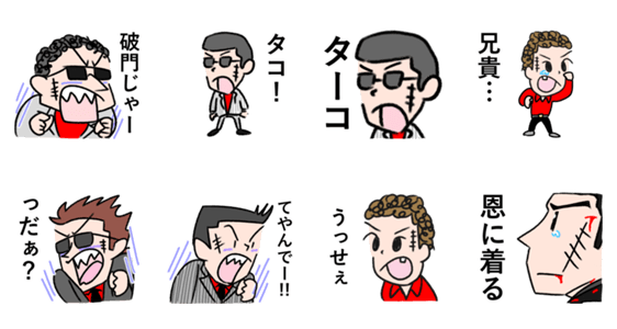 恐い人が喝いれます。俗に言う「チンピラ」「不良」「ヤンキー」といった人を極悪ではなく、かわいい風に描きたかった。「面白い」「使いやすい」と言ってもらうのが目標。