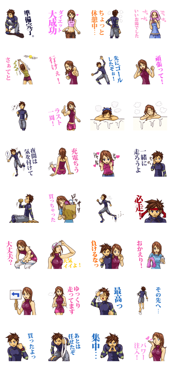 | スタンプ説明 | ランニングをしている際の出来事をスタンプにしました。日々の出来事を、ランニングを通して表現してみると、普段とは違った会話を楽しむ事が出来ます! |