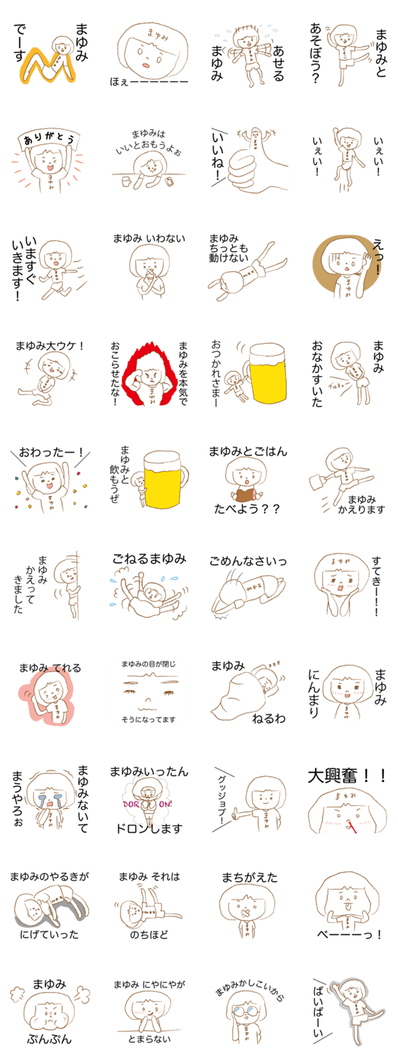 まゆみさんが使えるゆるめなスタンプです。プレゼントにも最適ですよ。