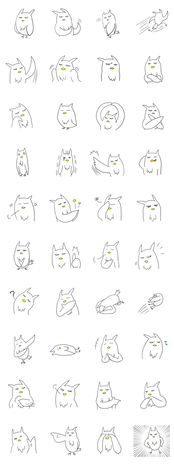 斜に構えたフクロウのスタンプです。言うほどニヒルではないですがそれなりに使いやすいとは思います。