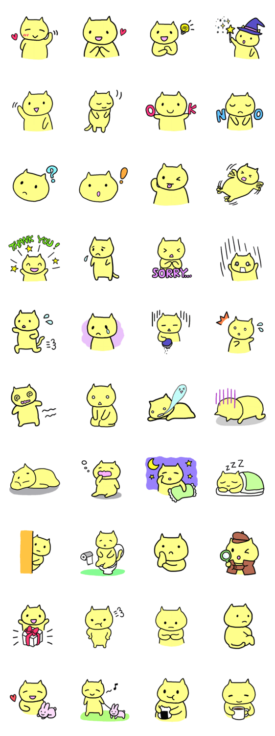 ちょっとぽっちゃりな可愛いネコの、手描きスタンプ。