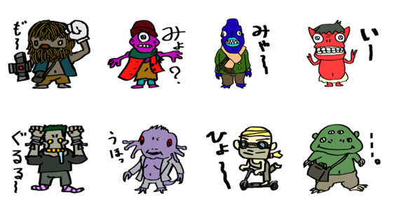 | スタンプ説明 | 何を言ってるかわからないモンスター8匹のスタンプです。 |