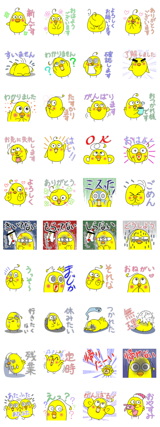 新人のヒヨコのひよっこです。上司、先輩に使える敬語スタンプ。同僚、友達に使えるフレンドリースタンプを詰め込みました。