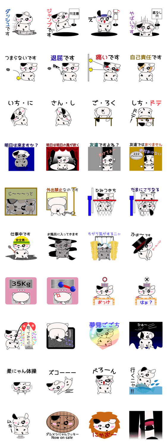 新種のねこ、その名はダルメシにゃん。すこ~し生意気なぶちぶち猫です。