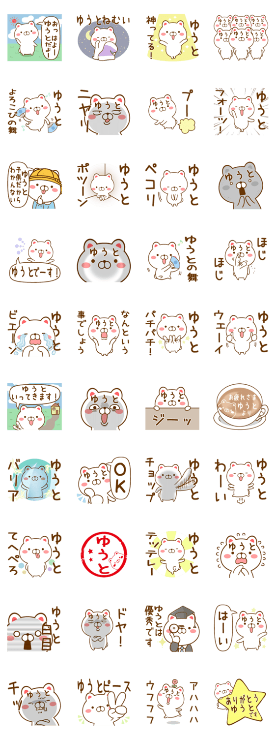 ゆうとさんが使うスタンプ。優斗,勇人,悠斗,裕翔,佑都,雄途,雄図,有斗,佑人,佑斗,侑人,侑都,優人,優翔,勇翔,友翔,勇登,優音,雄人,悠仁.侑斗などゆうとがつく人専用スタンプ