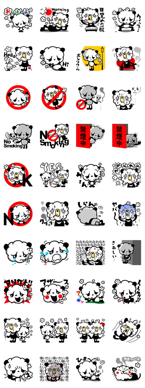 | スタンプ説明 | たばこをスパスパ‥スーパッパ‥たばこの煙に顔を覆われた熊と熊猫のスタンプです。 |
