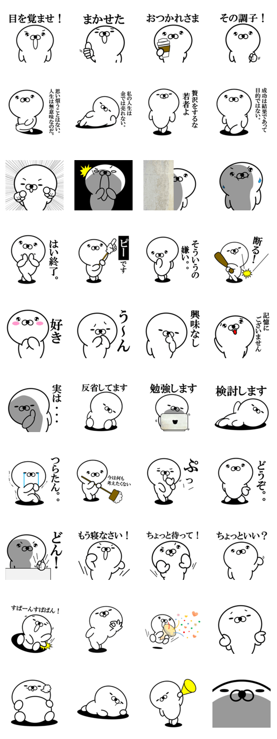 アザラシのようなアイツが発する正直すぎるスタンプです。 たまに格言を発します。