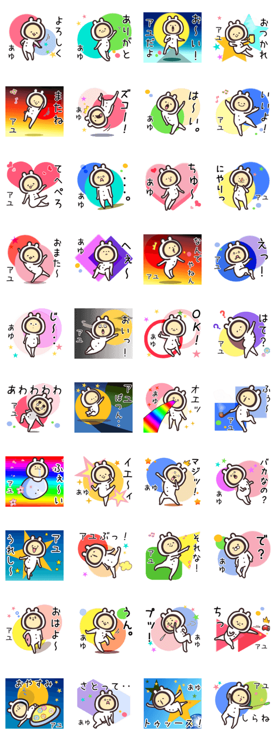 アユ(鮎美、歩夢、亜優、亜由、愛由、愛結、亜由子)などが使用する、ニックネーム、あだ名、あゆ専用の名前ラインスタンプです。皆に沢山、送って楽しみましょう