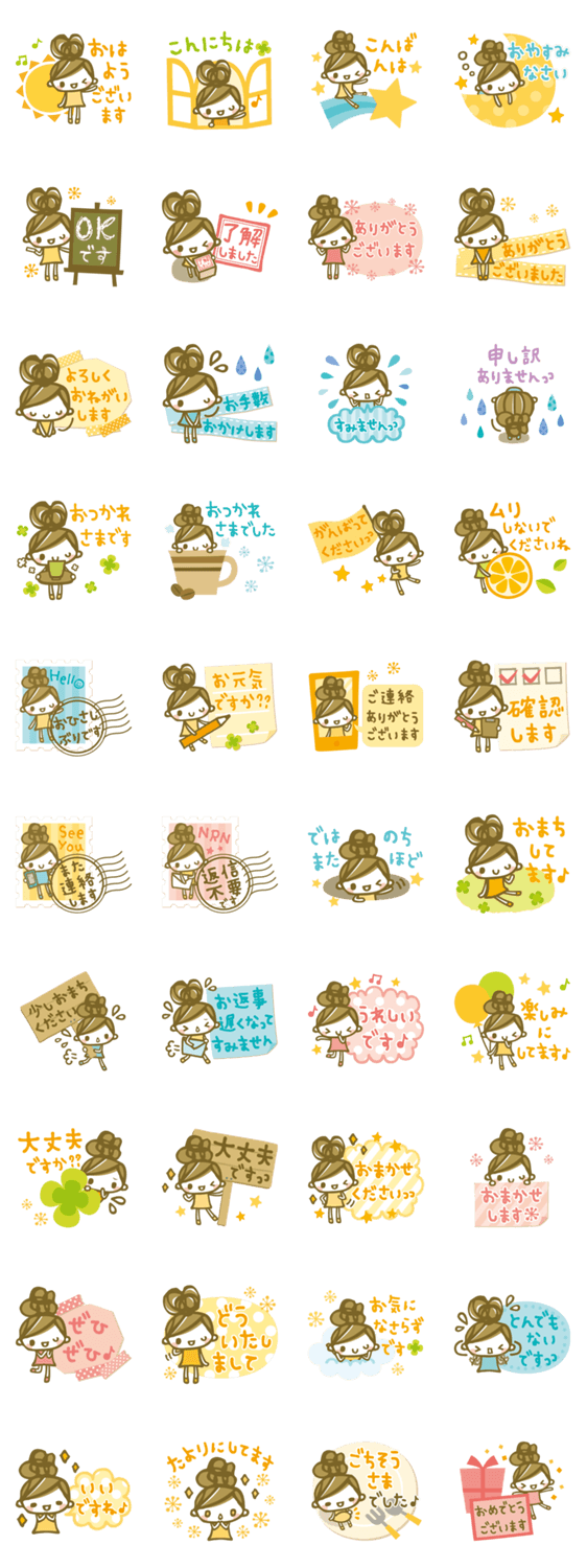 イラストレーター岩崎あゆみの【Sweetaholic】スタンプ第8弾♪ 【ちこちゃん】がほっこり笑顔のお手伝い* 敬語&丁寧語で年上の方にも使いやすいスタンプです♪