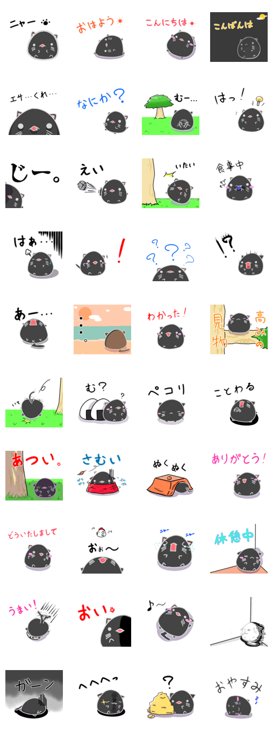 黒猫の「クロ猫丸」の日常を描いたスタンプです。猫ですが、丸いです。