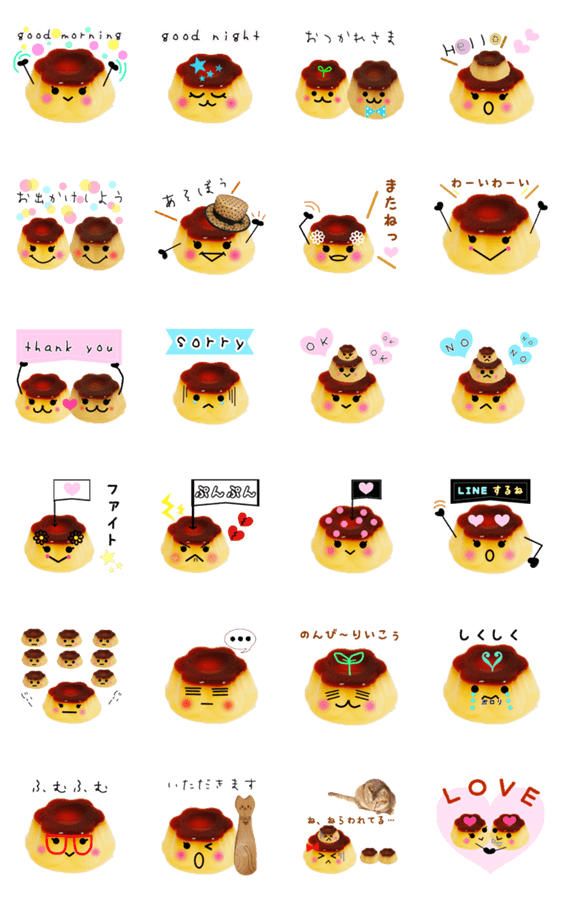 プティンちゃんの日常スタンプ。 プリンの実写で、可愛いプリリングな日常を描いてみました。