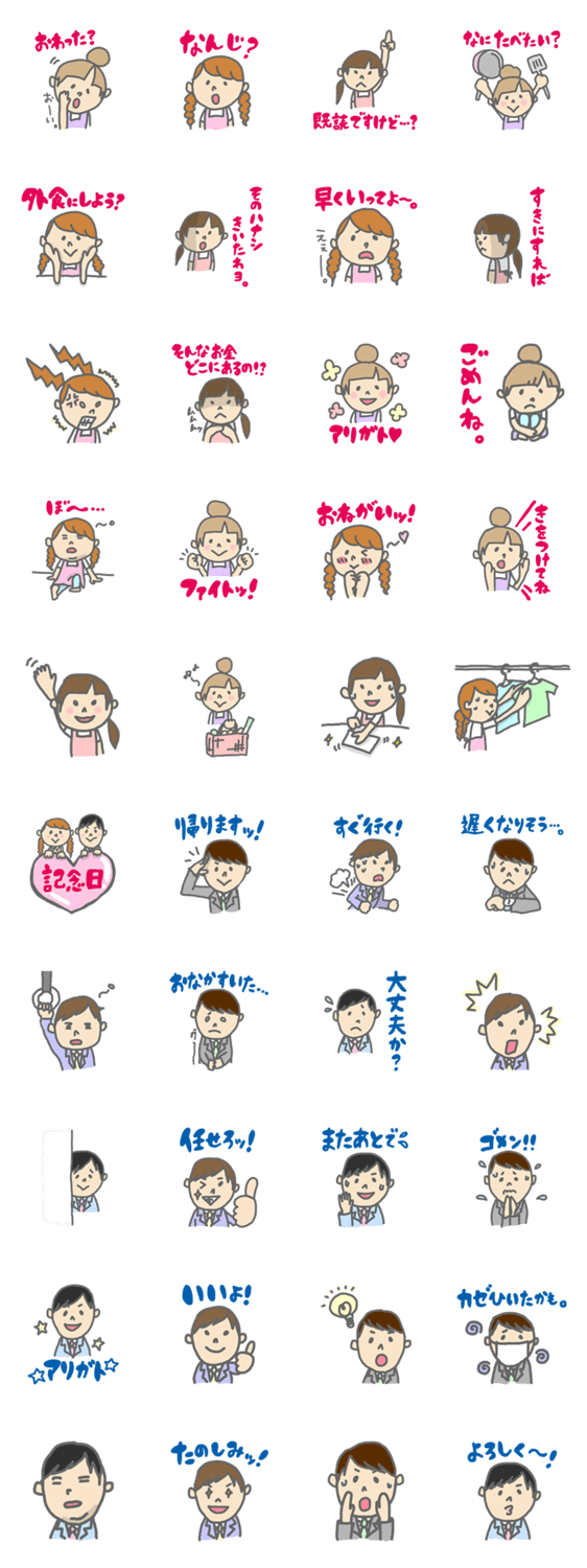 外で働く彼。おうちで家事をして待つ彼女。そんなカップル・夫婦用スタンプです。