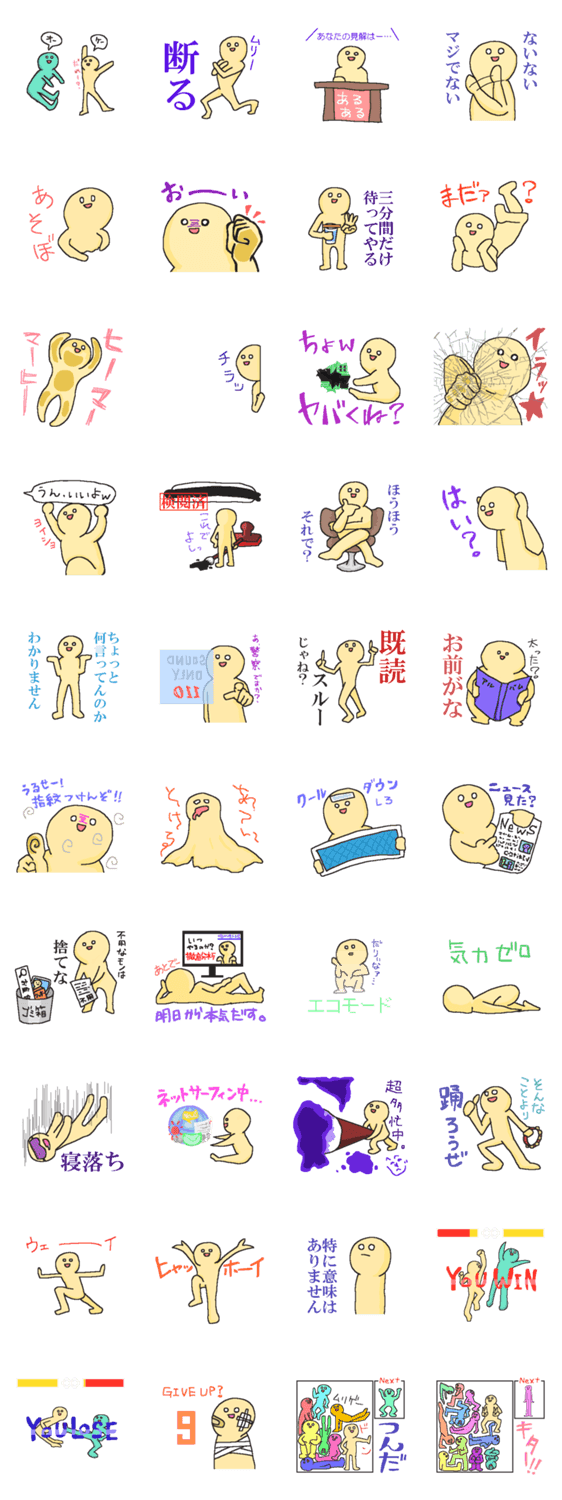 スマホの画面内に住む「何か」のスタンプです。 画面を汚したり、割ったり、勝手に発言されたりするけど、いつも笑顔の憎めない奴、もとい中の人(人間ではない)。