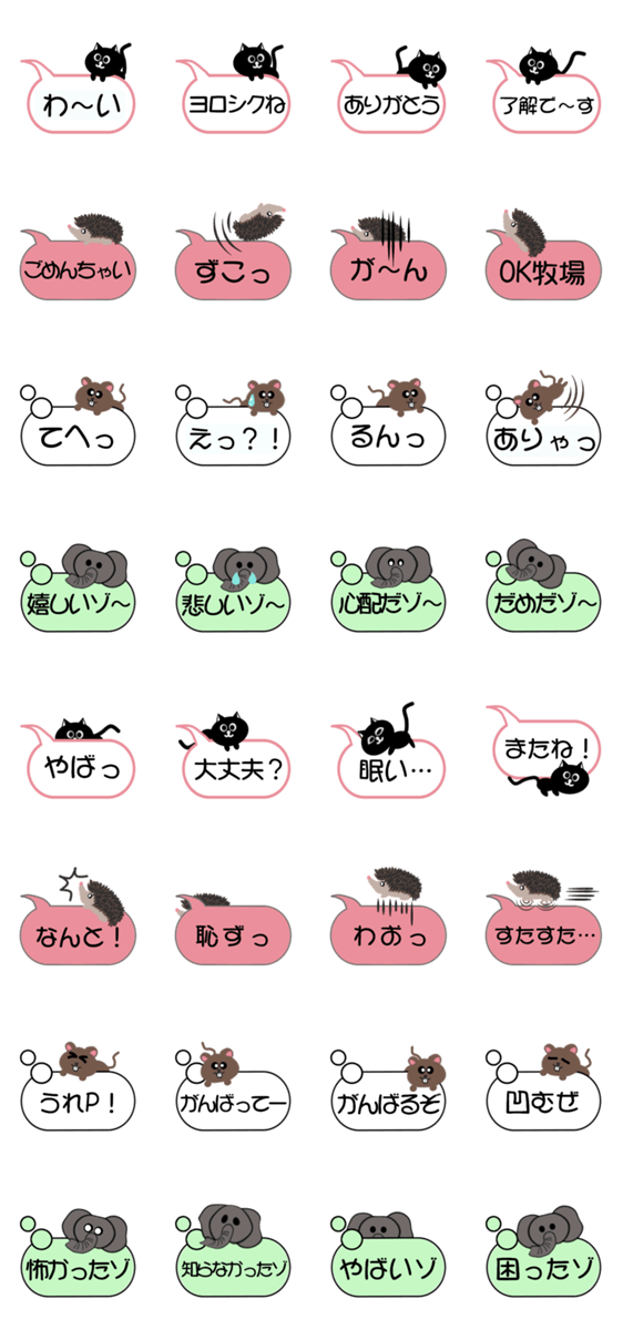 かわいい動物の吹き出しスタンプです。 普段の会話にお使い下さい。