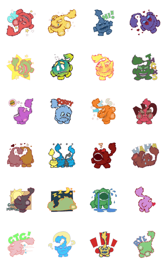 | スタンプ説明 | Lil Monsties stickers are here! Add color and fun to your messages with these playful monsters, bursting with attitude and emotions. |
