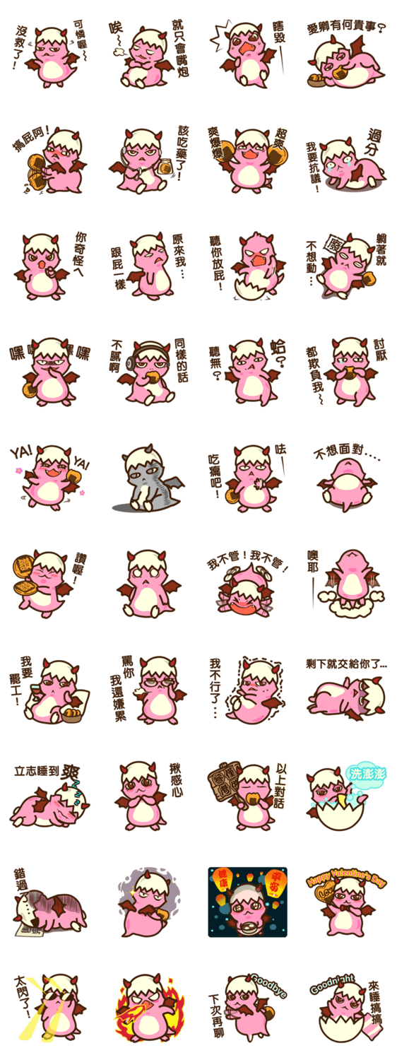 | スタンプ説明 | Dragon BeBe a flying dragon that like to eat cookie, not only ridicule others, but also cute. |