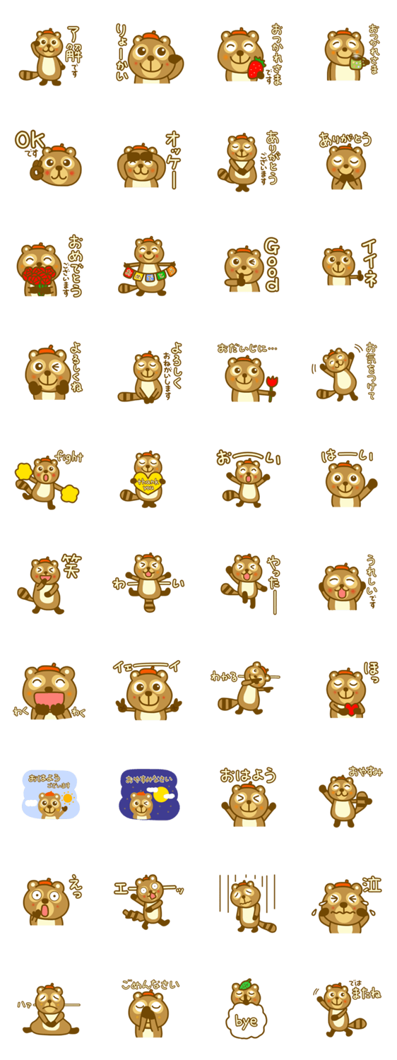 たぬきのスタンプです。 毎日の会話にお使い下さい