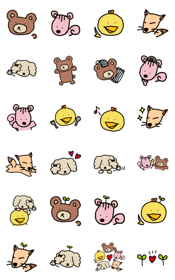 スタンプ説明 可愛くて仲良しな動物たちです!