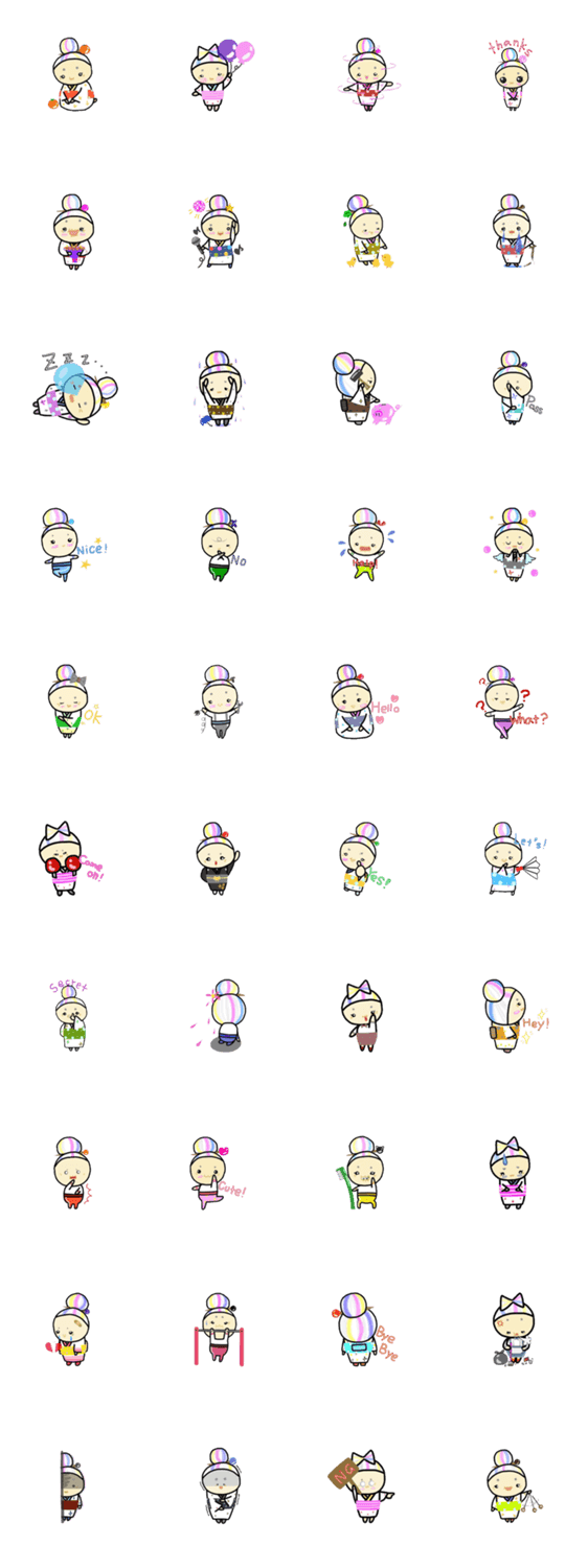 | スタンプ説明 | お洒落が大好きなカラフルでキュートなおばあちゃん。 |