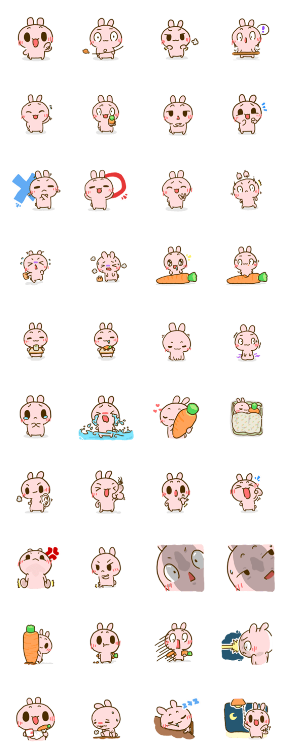 | スタンプ説明 | かわいいうさぎ - ウサコの日常、にんじんはウサコの大好物! |