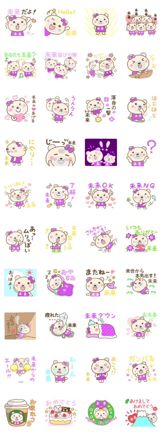 | スタンプ説明 | 日本全国の未来(みらい、みく)さんが日常で使える、ラブリーなパンダのスペシャルな名前スタンプです。 |