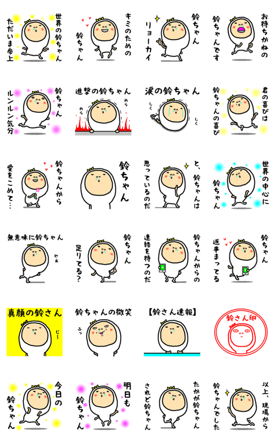 鈴木/鈴田/鈴本/鈴村/鈴井/鈴原/鈴口/鈴山/鈴池/鈴鹿/鈴平/鈴宮/美鈴/りんさんが使えるゆるゆるで脱力系のすず専用スタンプ