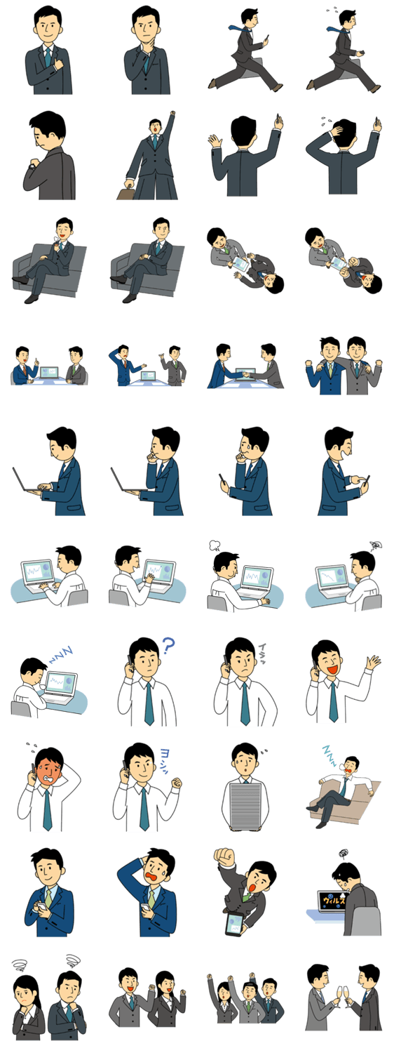 サラリーマンに起こる様々なシーンの数々をスタンプ化!ビジネス用途にもどうぞ。