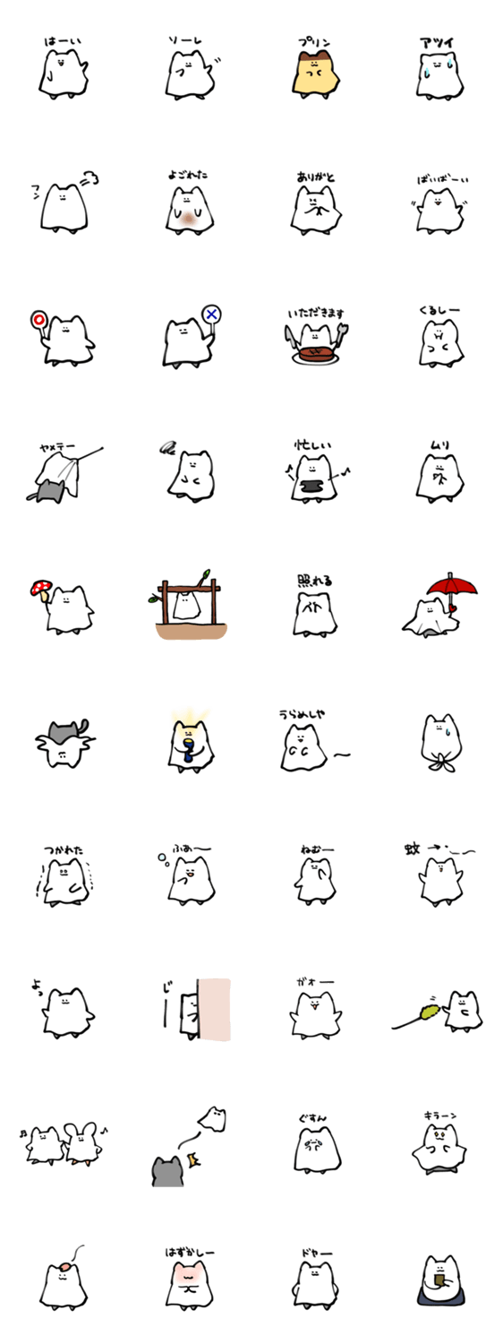 白ネコのあいうえお・・・ってるスタンプ
