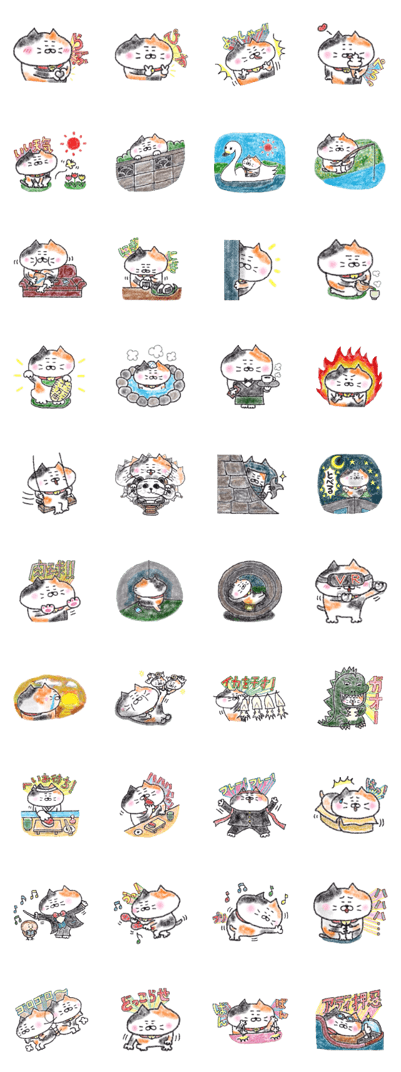 三毛猫ちゃんのスタンプ第8弾。何だか楽しそー!一緒に遊ぶのだー!