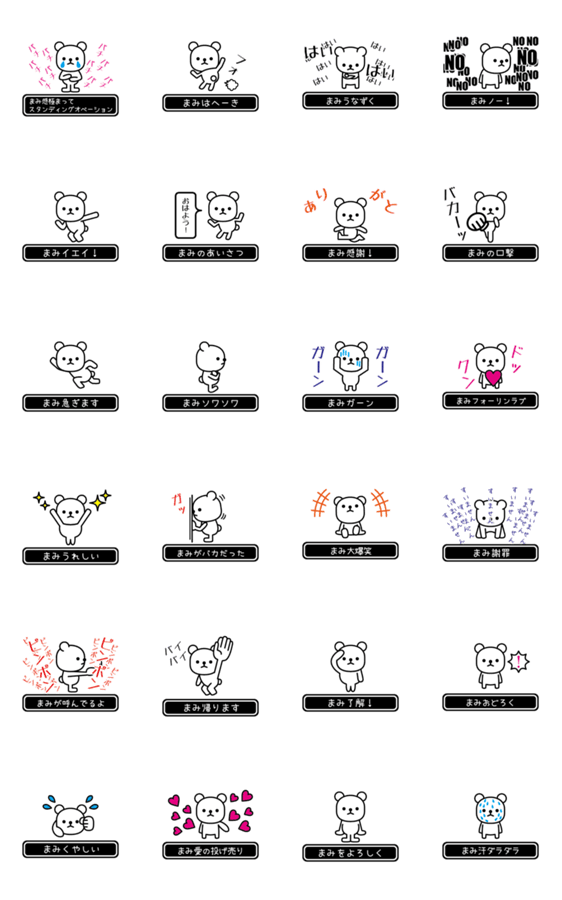 | スタンプ説明 | まみちゃんが高速で動く名前スタンプが登場!高速で動きがちなマミさんのための苗字・名字スタンプだよ!高速のまみさんはとってもイケてるんだ! |